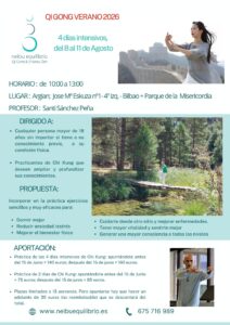 Me hace especial ilusión haceros llegar esta propuesta: 4 días intensivos Qigong por la mañana del 8 al 11 de agosto (sábado, domingo, lunes y martes). Este curso, está abierto a cualquier persona que quiera profundizar en la práctica del Chi Kung, tenga o no experiencia previa. Los objetivos serán, por un lado, experimentar en […]